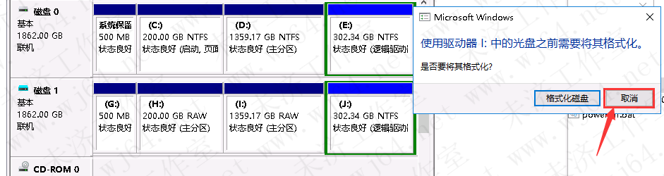 联机后会有提示 格式化磁盘 的窗口,一律点“取消”